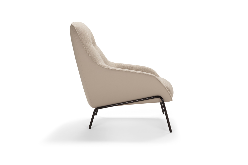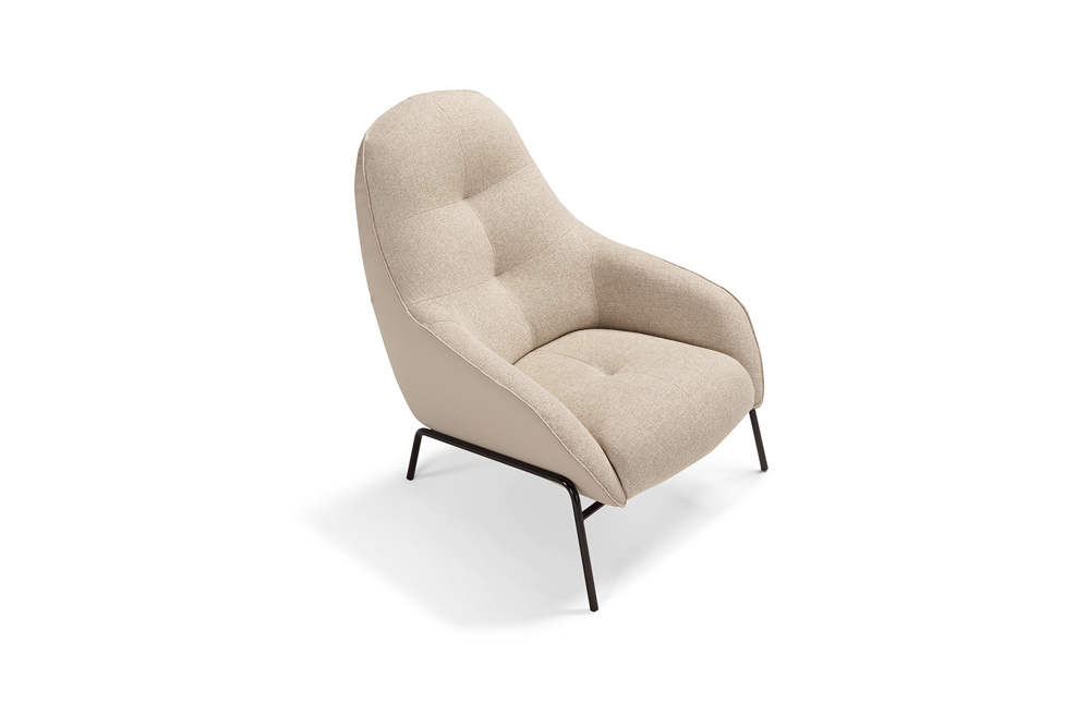 The classic tub chair finds a contemporary reinterpretation through the linear and essential design of Ariel. Thanks to its enveloping and welcoming comfort, enhanced by the soft backrest that forms a single upholstered element together with the armrests, this model defines a small parenthesis of relaxation in which to devote oneself to reading or to one’s favourite pastime. Placed on a tubular metal frame, Ariel offers a double type of cover: leather on the outside, and a quilted fabric for the inner part padding. All finished with a fine seam edging. Matched in combination with a versatile square pouff.
