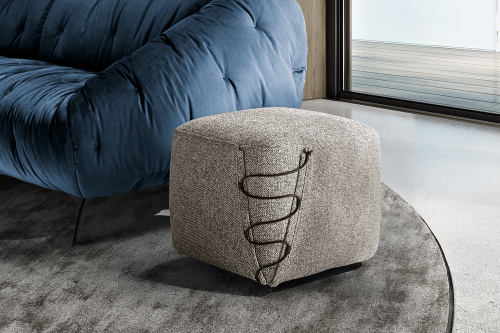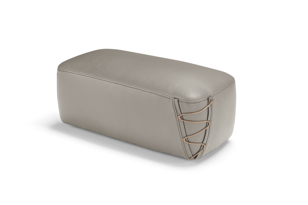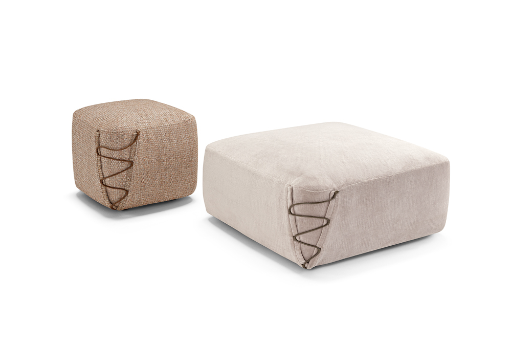 Kea stools are available in three sizes, with a padded seat in fabric or leather. A decorative aesthetic feature is the leather lace positioned at the corner, in five different color options, to give an informal and original touch to any decor.