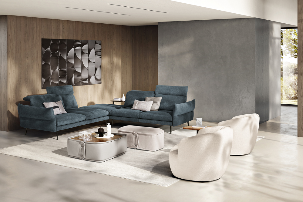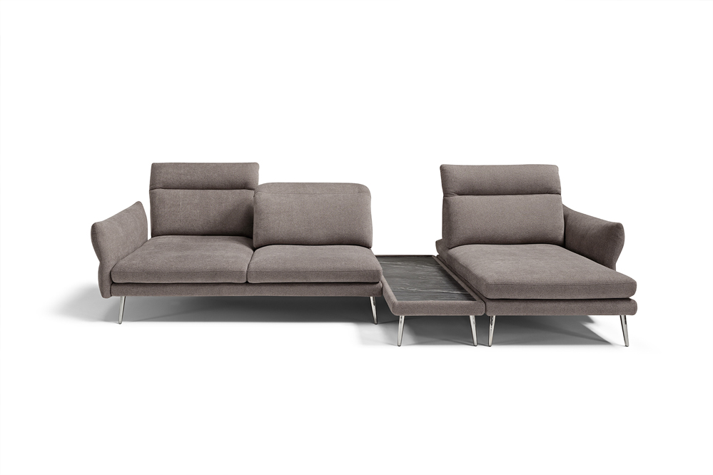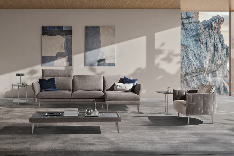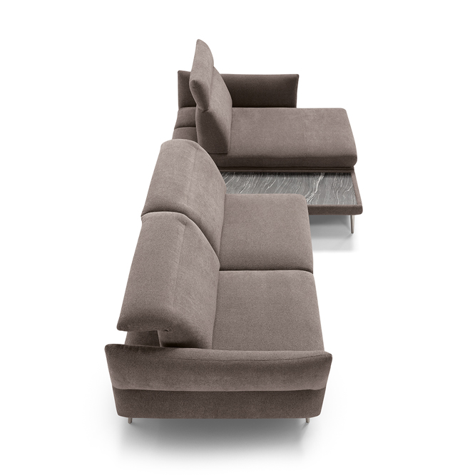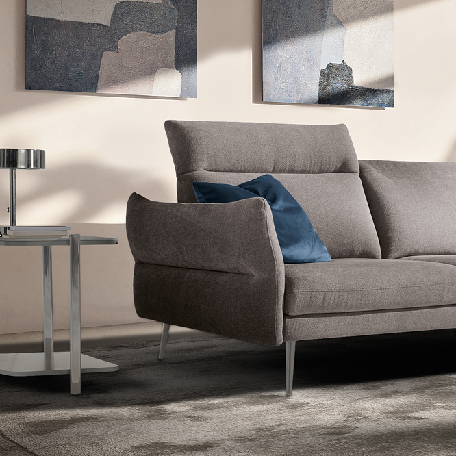 Modula is an expression of versatility and dynamism. A result of a clever combination of modules. The model is developed in a linear fashion, in harmony with different seat depths.Available with either leather or fabric covering and with five different finishes for the feet.