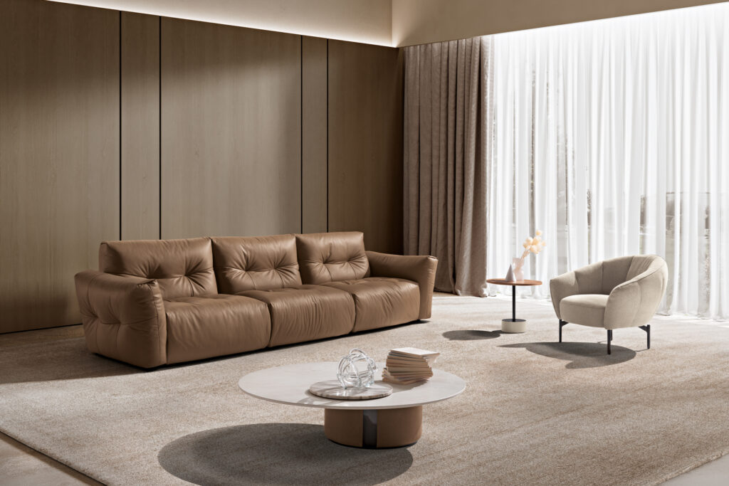 Élégant et spectaculaire, Sospiro est un canapé à l’esthétique légère et harmonieuse, aux volumes moelleux…