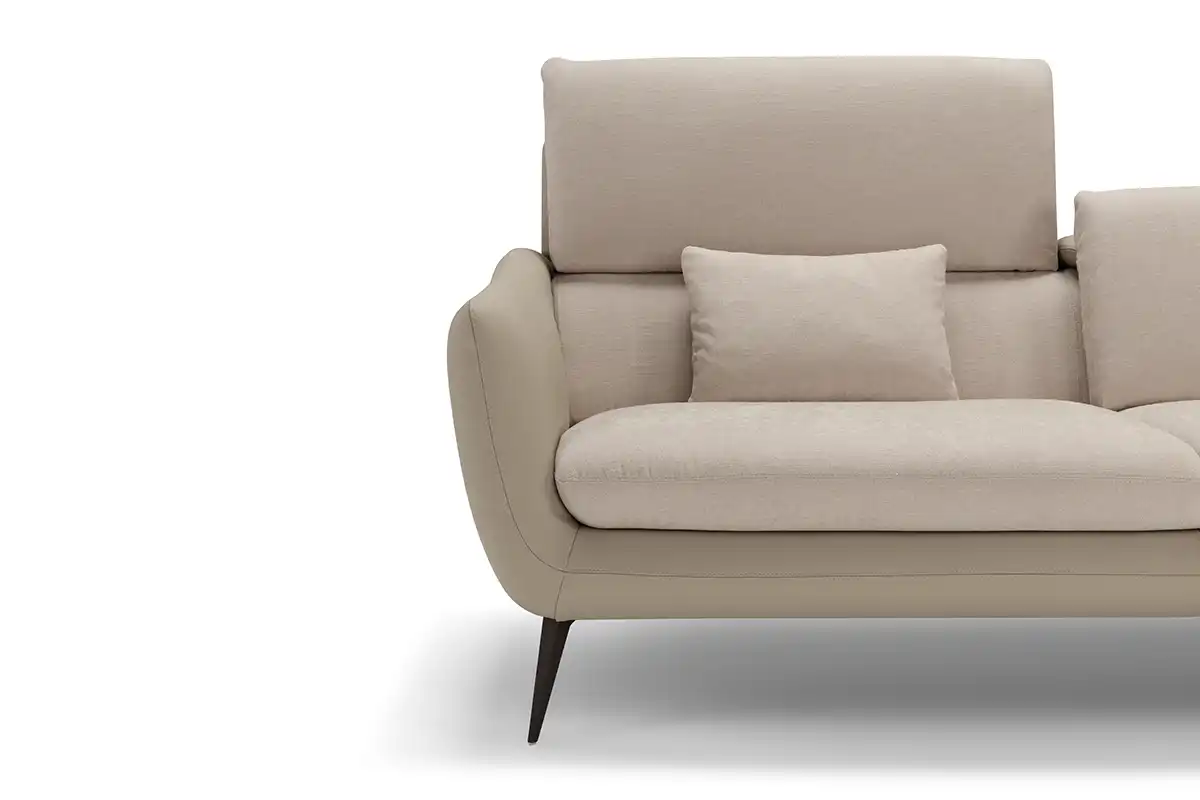 Sintesi al contempo di comfort e di un’eleganza rigorosa, l’ampio divano tre posti Core è definito da una solida struttura rivestita in pelle, all’interno della quale sono alloggiate le parti imbottite, foderate in tessuto della stessa nuance. Configurabile in un’ampia gamma di composizioni che vanno ad assecondare ogni esigenza di spazio, Core non perde di vista la dimensione del relax: ad ogni singola seduta abbiamo integrato un movimento di traslazione verticale per consentire un aumento dell’altezza della spalliera, che così diventa anche poggiatesta. Lo abbiamo inoltre dotato di soffici cuscini movibili, da usare come braccioli o, all’occorrenza, come poggiareni. A sollevarlo da terra, conferendogli una complessiva leggerezza, piedini sfaccettati in metallo verniciato