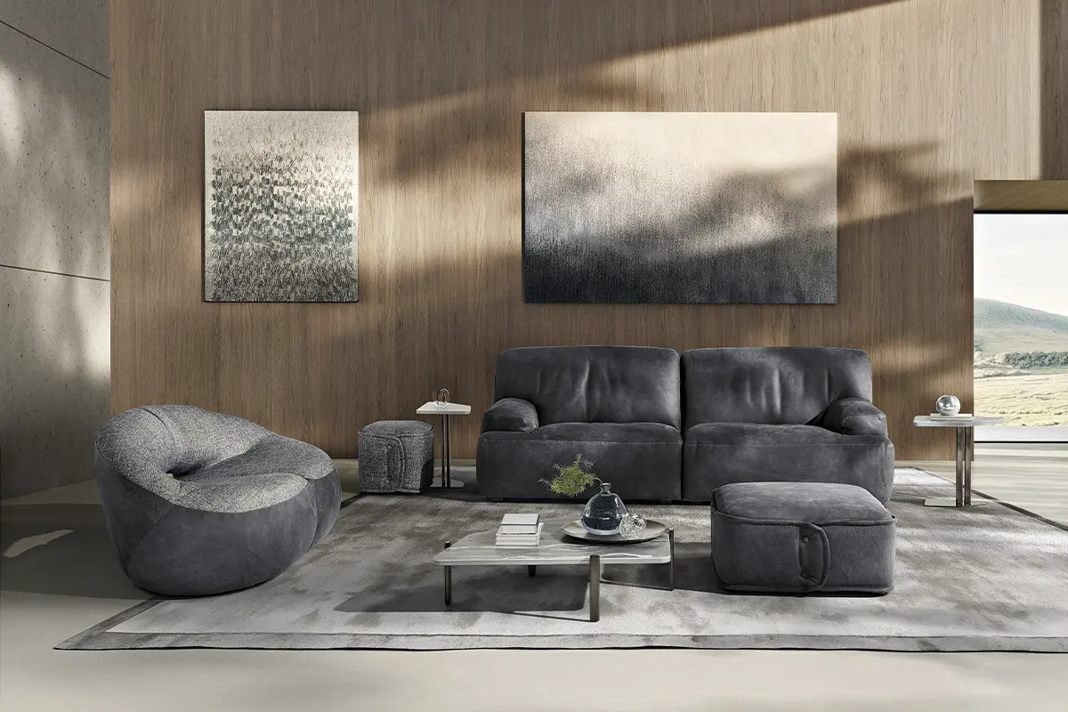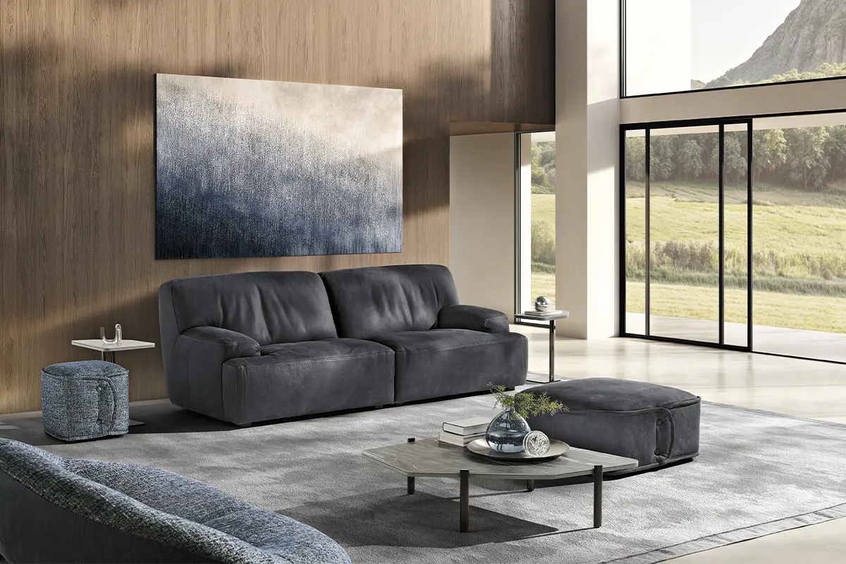 Divano in pelle nabuk soffice come una Nuvola, dalla spiccata comodità e dalle forme avvolgenti, l’deale per i tuoi momenti di relax. Nuvola offre un’esperienza unica di comfort assoluto.