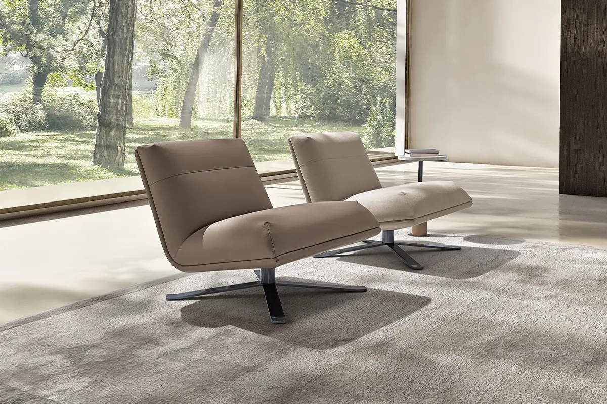 Dal forte appeal contemporaneo e destinata ad arredare con carattere ogni ambiente, la poltrona Scott si distingue per la sua particolare forma angolare senza braccioli, al contempo ricercata ed accogliente.