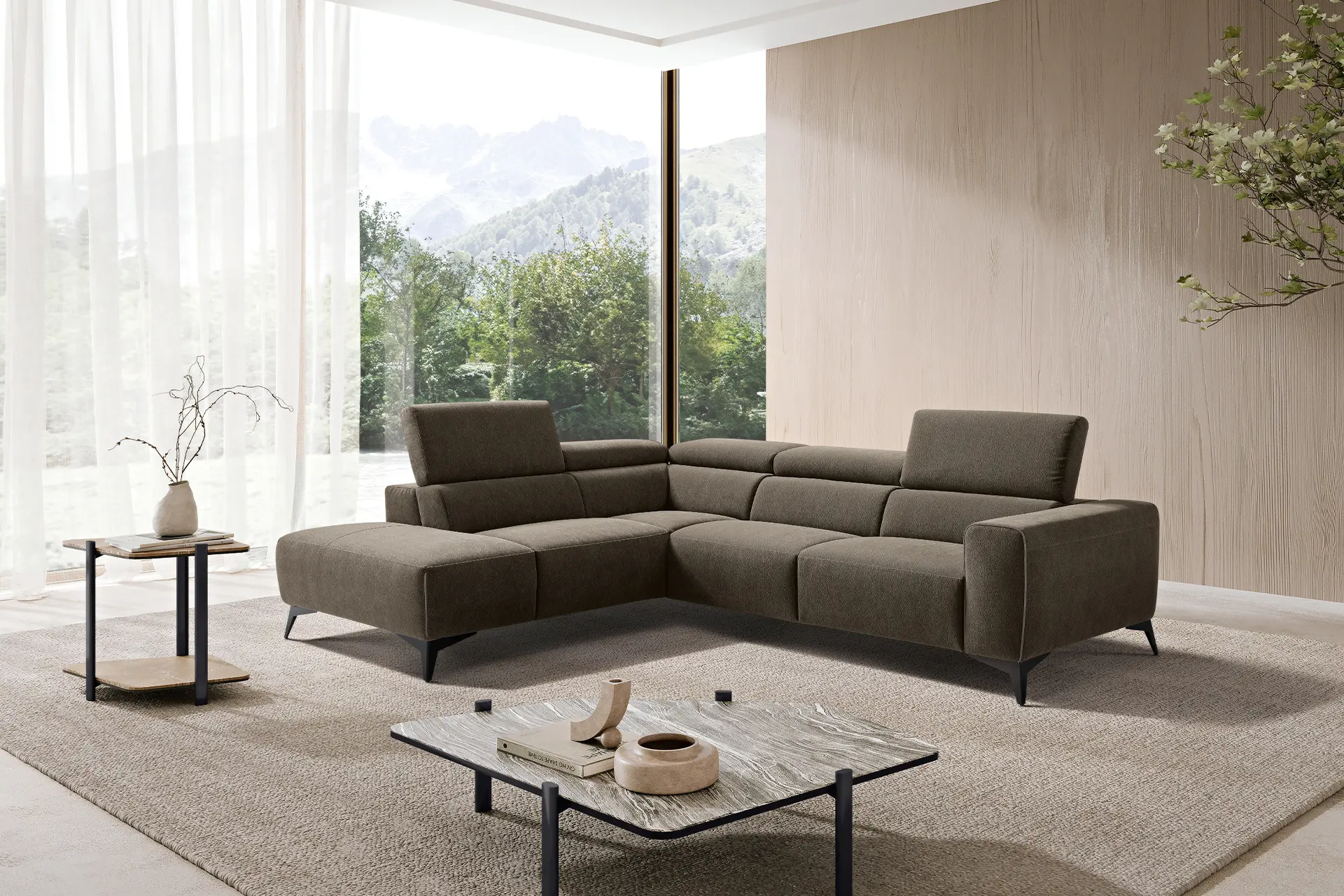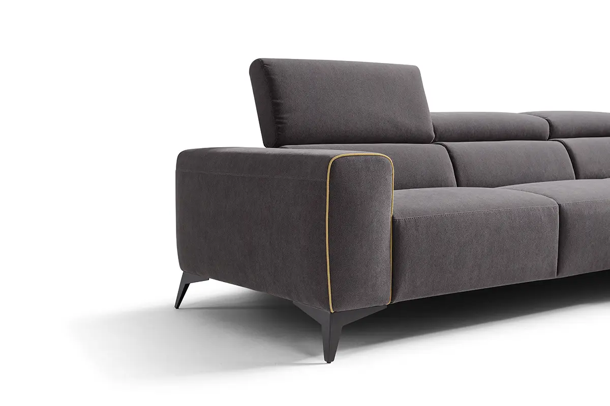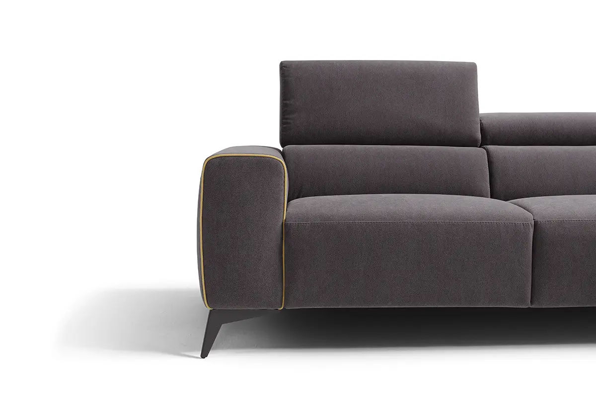 Volumi generosi e accoglienti per il divano componibile Rev: l’abbinamento dei suoi moduli, progettati per adattarsi perfettamente gli uni agli altri, consente di espandere, ridurre o riconfigurare il divano a seconda dell’ambiente in cui verrà collocato e delle singole esigenze di comfort. Tra i best seller della nostra collezione di divani relax, Rev si caratterizza per la presenza di movimenti meccanici che si mettono al servizio del riposo e del migliore risultato ergonomico: attraverso una pulsantiera attivabile elettricamente è infatti possibile sollevare la pediera, mentre il poggiatesta può essere abbassato grazie ad un semplice gesto manuale. La cura artigianale per i dettagli, elemento distintivo di tutte le nostre creazioni, trova qui espressione nella finitura con bordino a contrasto cromatico del bracciolo e nei piedini in metallo disponibili in quattro diverse finiture. Rev è proposto con rivestimento in tessuto ma è disponibile su richiesta anche in pelle.