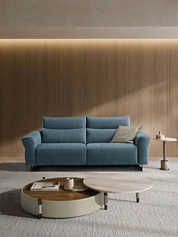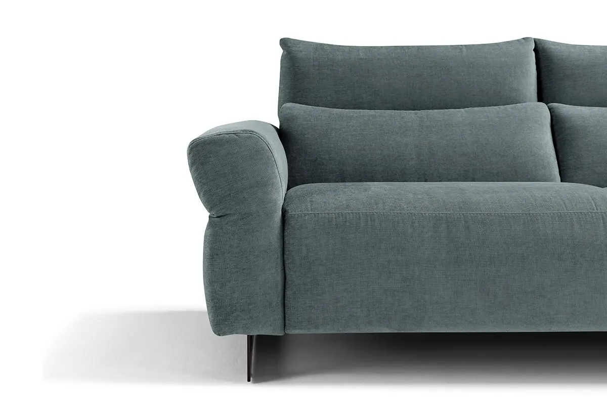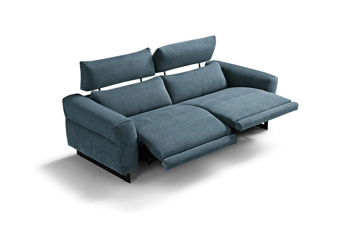 Tecnologia al servizio della migliore esperienza di relax, racchiusa in un animo soffice e accogliente: questo lo spirito del modello componibile Tender, dotato di meccanismo che consente di aprire la pediera e reclinare il poggiatesta azionando un unico pulsante elettrico. Caratterizzato nel design dai braccioli dal particolare profilo asimmetrico e poggiato su solide slitte in metallo in sei diverse finiture, questo divano è disponibile con rivestimenti in pelle o tessuto e, per un tocco di colore in più, con cuciture a contrasto.