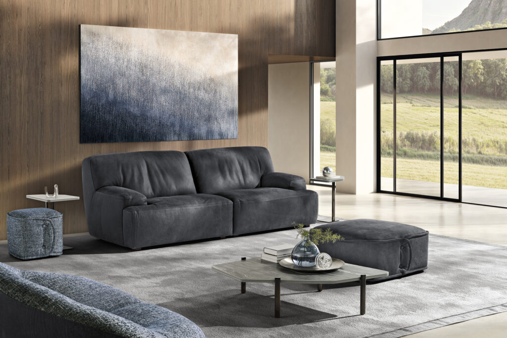 Divano in pelle nabuk soffice come una Nuvola, dalla spiccata comodità e dalle forme avvolgenti,…