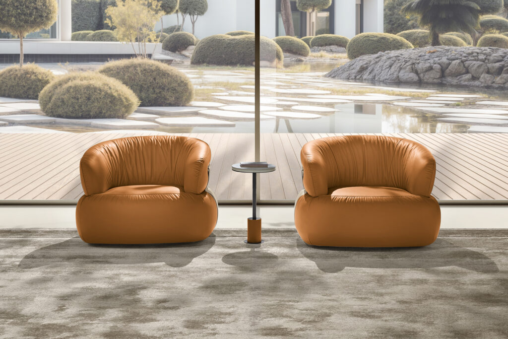 Volumi pieni e morbidi per la poltrona Dana che unisce la raffinatezza nella lavorazione sartoriale…