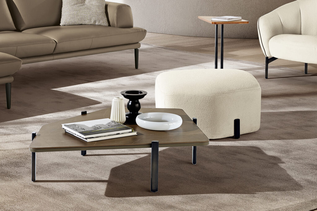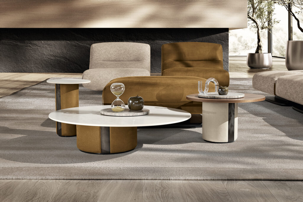 Dalle forme essenziali e rivestiti nelle tonalità neutre degli elementi naturali, i complementi d’arredo Tarkin…