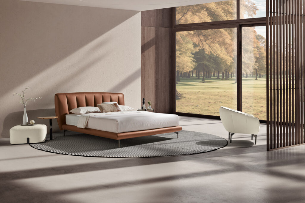 Sapiente lavorazione artigianale e dettagli raffinati definiscono lo stile inconfondibile di Perla, un letto imbottito…